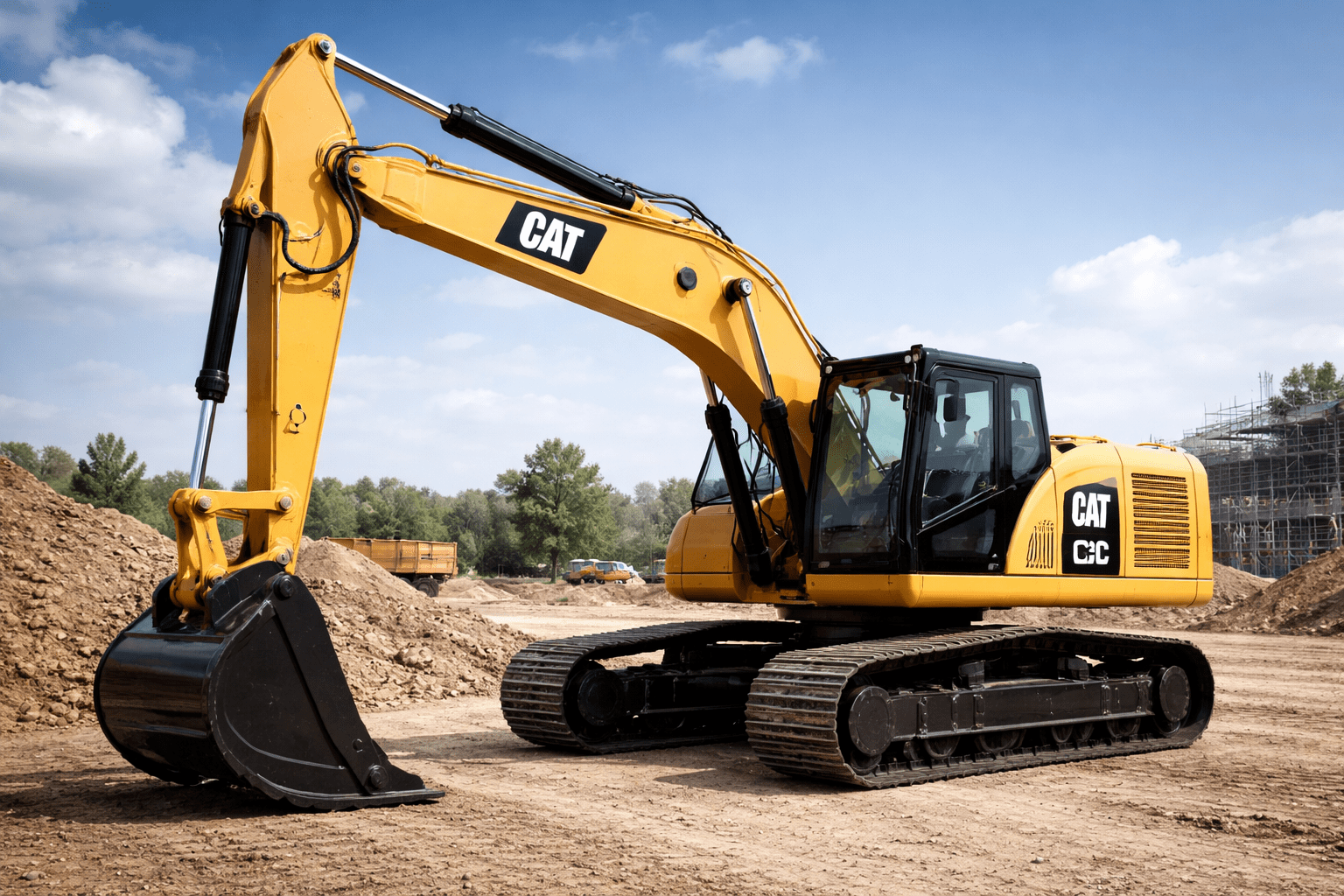 Nowoczesna koparka gąsienicowa CAT 320 GC łączy wysoką wydajność z niskim zużyciem paliwa. Idealna do prac budowlanych, ziemnych i infrastrukturalnych.