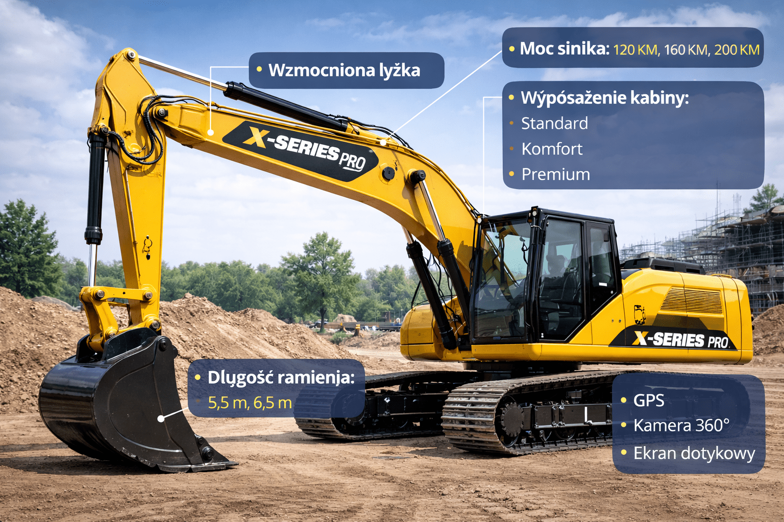 Koparka X-Series PRO to rozwiązanie stworzone dla firm, które potrzebują elastyczności i wydajności w różnych warunkach pracy. Dzięki szerokiemu wyborowi konfiguracji możesz idealnie dopasować sprzęt do konkretnego projektu — od lekkich prac ziemnych po wymagające zadania infrastrukturalne. Nowoczesne systemy sterowania oraz zoptymalizowana hydraulika zapewniają wysoką precyzję i oszczędność paliwa. Konstrukcja maszyny gwarantuje trwałość nawet w najtrudniejszych warunkach.